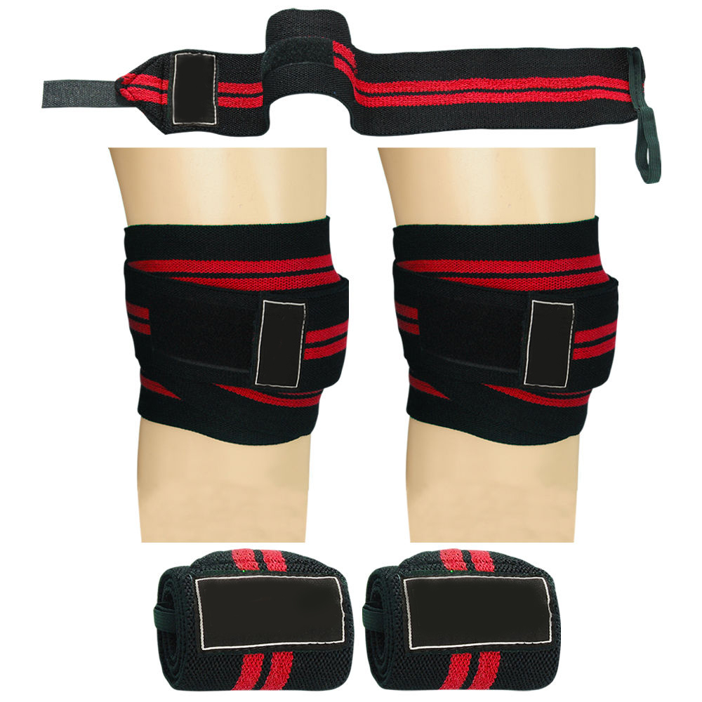 Weight Lifting Wrist Wrap and knee wrap full set Workout Fitness Body Building Training Exercise Gym Sport made with Elastic with silicon printed for ideal weight lifting workout Velcro strap for secure fitting . With your rubber Emboss Logo can also customize.